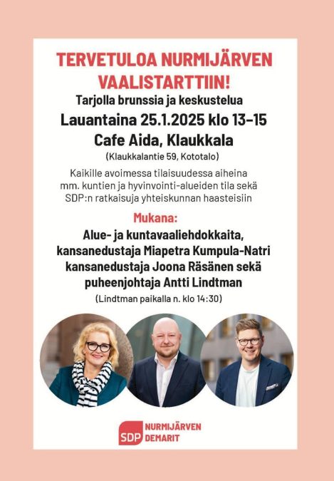 Alue- ja kuntavaalien Nurmijärven demareiden kampanja käynnistyy meillä rennosti kahvilakeskusteluilla ja brunssitarjoilulla.